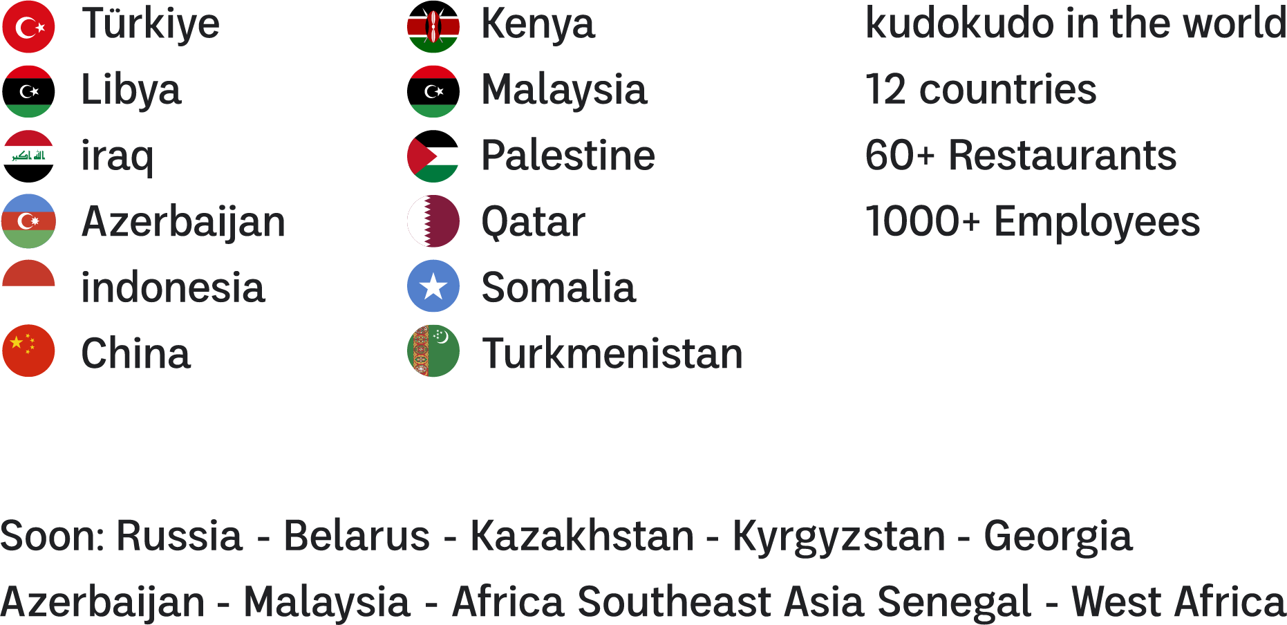 Today we have more than 80KUDOKUDO restaurants in over 10 countries